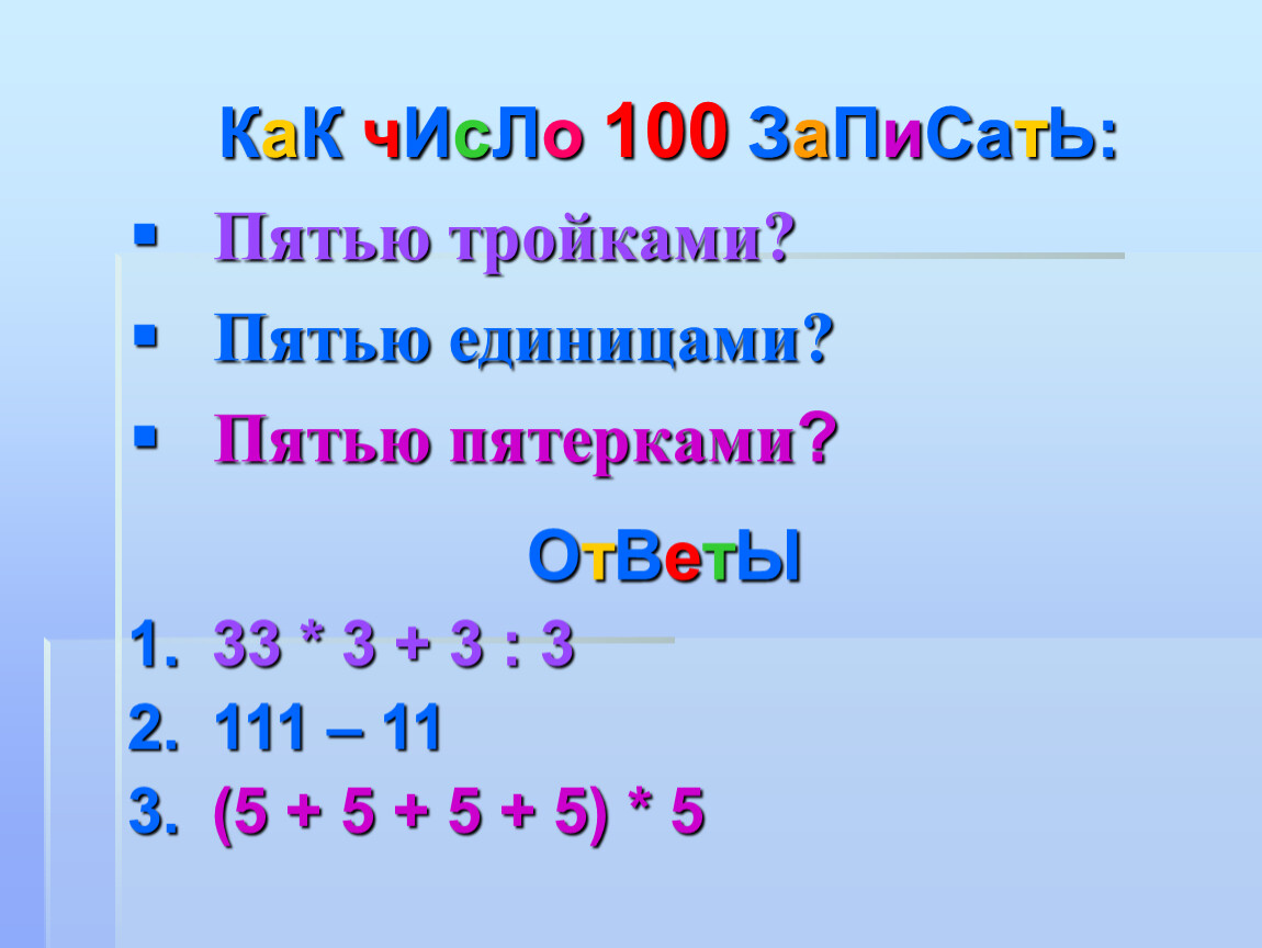 КаК чИсЛо 100 ЗаПиСатЬ: