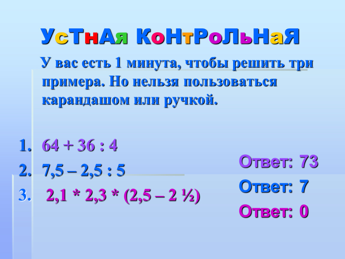 У вас есть 1 минута, чтобы решить три примера. Но нельзя пользоваться карандашом или ручкой.