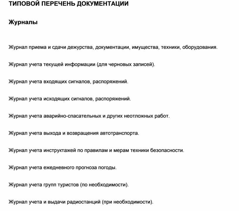 ТИПОВОЙ ПЕРЕЧЕНЬ ДОКУМЕНТАЦИИ