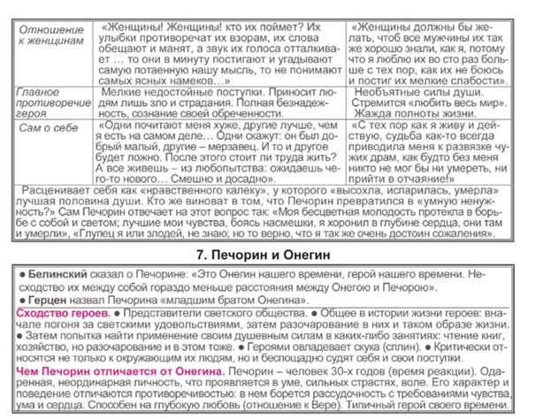 Материал к урокам по русской литературе