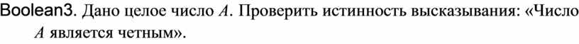 Boolean3. Дано целое число A. Проверить истинность высказывания: «Число A является четным».