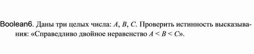Boolean6. Даны три целых числа: A, B, C. Проверить истинность высказыва-