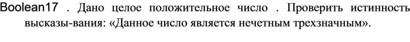 Boolean17 . Дано целое положительное число . Проверить истинность высказы-вания: «Данное число является нечетным трехзначным».