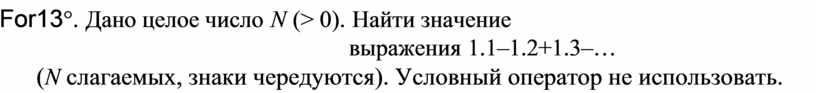 For13°. Дано целое число N (> 0). Найти значение выражения 1.1–1.2+1.3–…