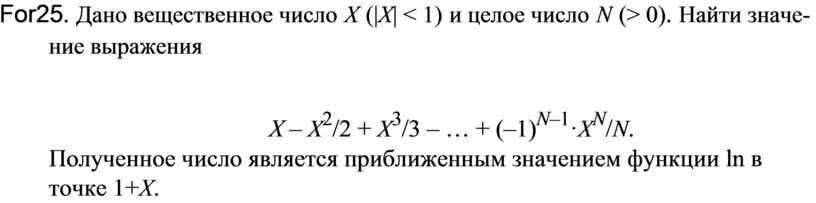 For25. Дано вещественное число X (|X| < 1) и целое число N (> 0). Найти значе-ние выражения