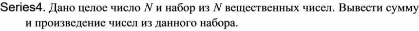 Series4. Дано целое число N и набор из N вещественных чисел. Вывести сумму и произведение чисел из данного набора.