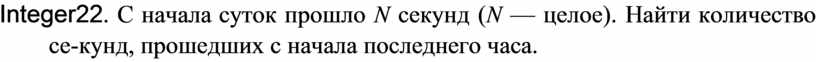 Integer22. С начала суток прошло N секунд (N — целое). Найти количество се-кунд, прошедших с начала последнего часа.