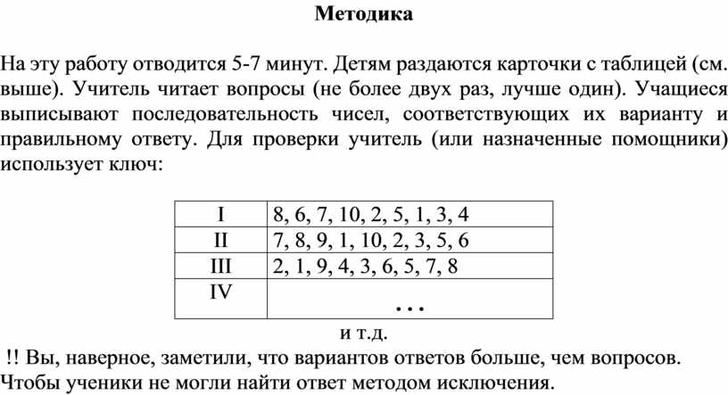!! Вы, наверное, заметили, что вариантов ответов больше, чем вопросов. Чтобы ученики не могли найти ответ методом исключения.