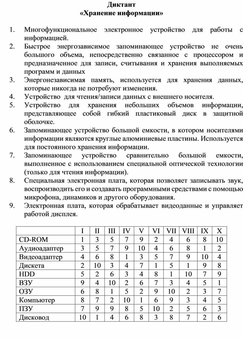 7. Запоминающее устройство сравнительно большой емкости, выполненное с использованием специальной оптической технологии (только для чтения информации).