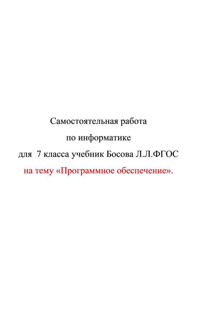 на тему «Программное обеспечение».