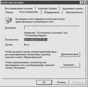 Если вы уже вошли в систему, то найдите на Рабочем столе значок Мой компь-ютер. Щелкните на нем правой кнопкой мыши и в раскрывающемся меню вы-берите команду Свойства. Откроется окно, в котором перейдите на вкладку Имя компьютера. Обратите внимание на строку Полное имя (рис. 5.1). Знакомьтесь —