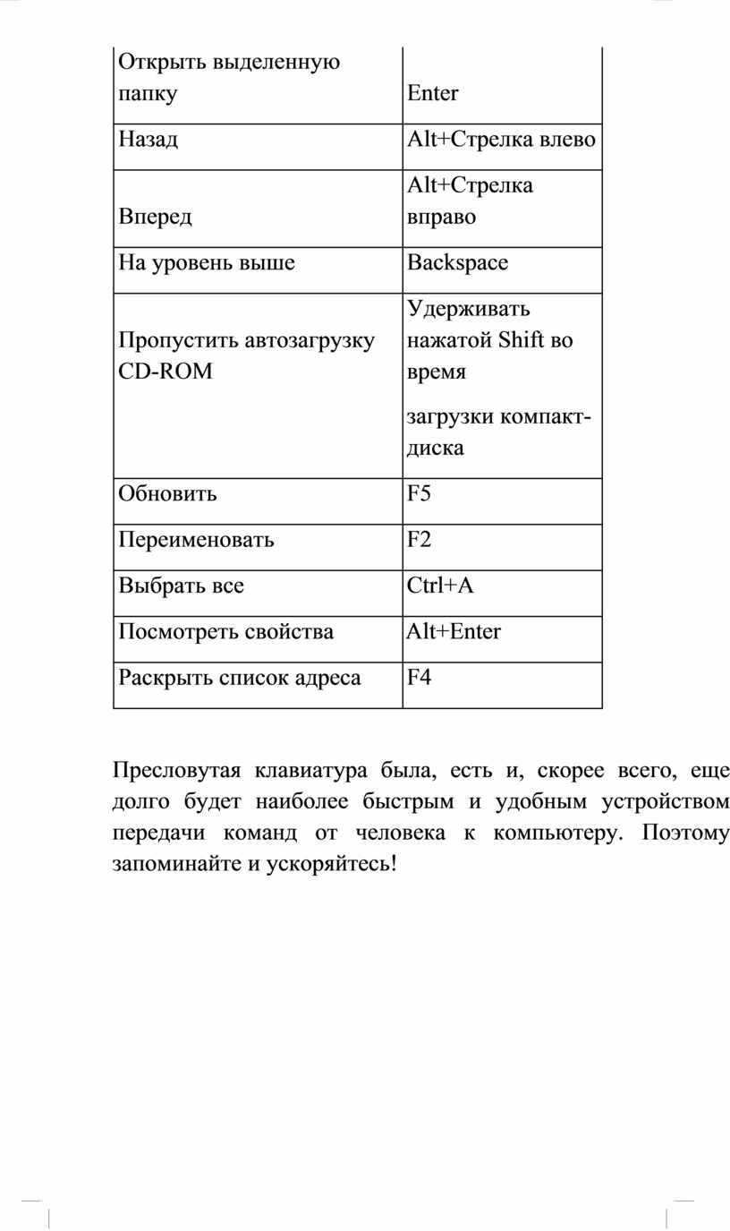 Пресловутая клавиатура была, есть и, скорее всего, еще долго будет наиболее быстрым и удобным устройством передачи команд от человека к компьютеру. Поэтому запоминайте и ускоряйтесь!