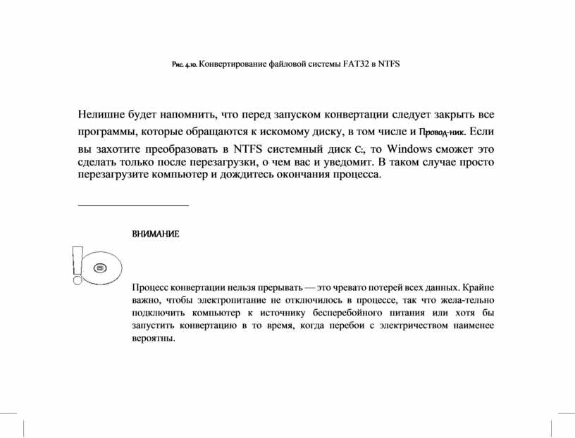 Рис. 4.10. Конвертирование файловой системы FAT32 в NTFS