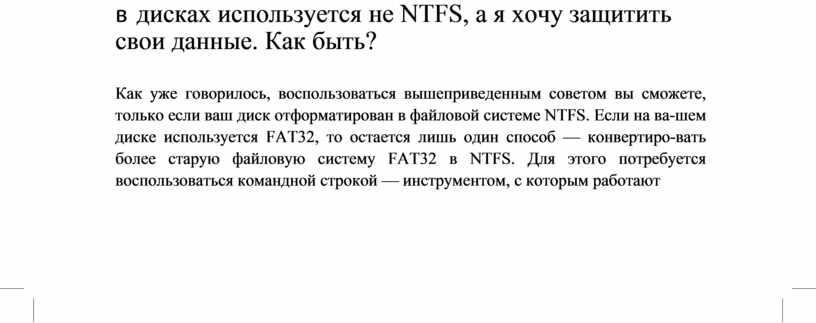 в дисках используется не NTFS, а я хочу защитить свои данные. Как быть?