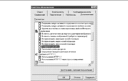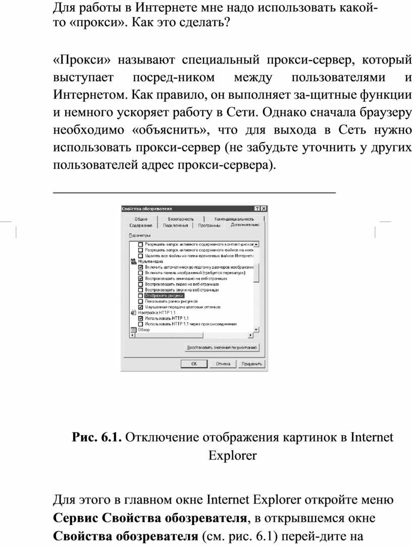 Рис. 6.1. Отключение отображения картинок в Internet Explorer