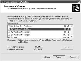 Для установки необходимого компонента рядом с его названием необходимо установить флажок. Обратите внимание, что для осуществления этого вам по-требуется вставить в привод установочный компакт-диск Windows либо ука-зать путь к файлам установки системы на жестком диске.
