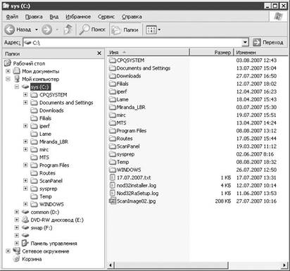 щелчок на столбце приведет к тому, что сортировка будет произведена в об-ратном порядке (в данном случае вверху списка уже окажутся самые малень-кие файлы).