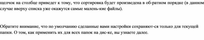 Обратите внимание, что по умолчанию сделанные вами настройки сохраняют-ся только для текущей папки. О том, как применить их для всех папок на дис-ке, вы узнаете далее.