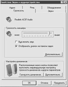 Если флажок Отображать значок на панели задач установить не удается, посколь-ку все пункты неактивны, значит, у вас не установлены драйверы для звуковой карты или она функционирует неправильно. В таком случае можно рекомендо-вать обратиться ко второй части книги.
