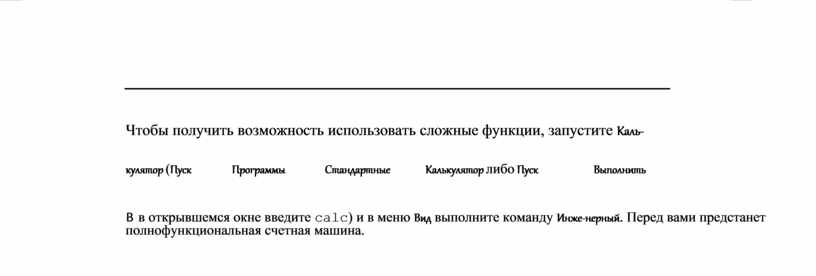 В в открывшемся окне введите calc) и в меню Вид выполните команду Инже-нерный. Перед вами предстанет полнофункциональная счетная машина.