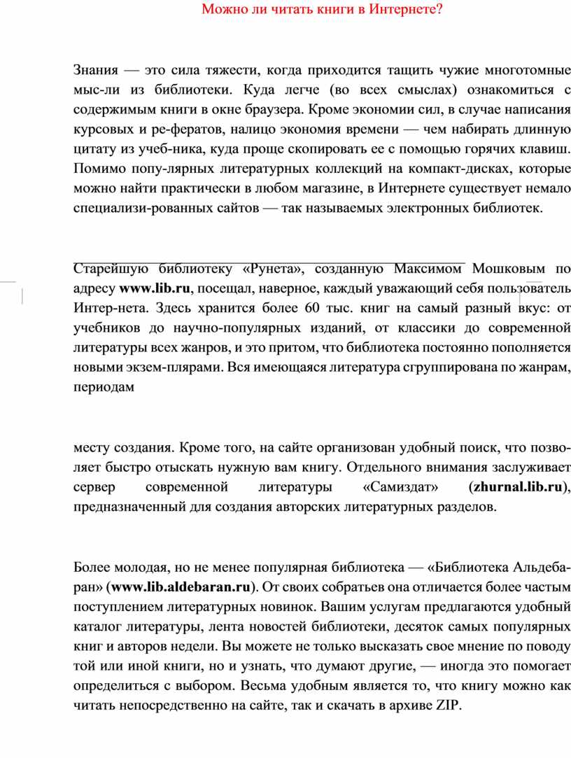 библиотеку «Рунета», созданную Максимом Мошковым по адресу www.lib.ru,