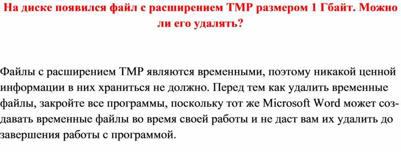 На диске появился файл с расширением TMP размером 1 Гбайт. Можно ли его удалять?