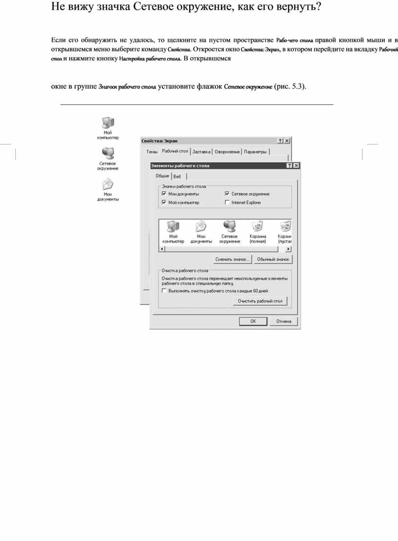 окне в группе Значки рабочего стола установите флажок Сетевое окружение (рис. 5.3).