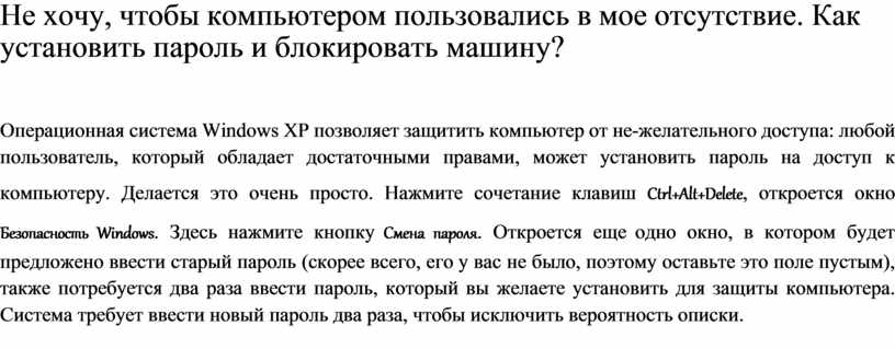 Не хочу, чтобы компьютером пользовались в мое отсутствие. Как установить пароль и блокировать машину?