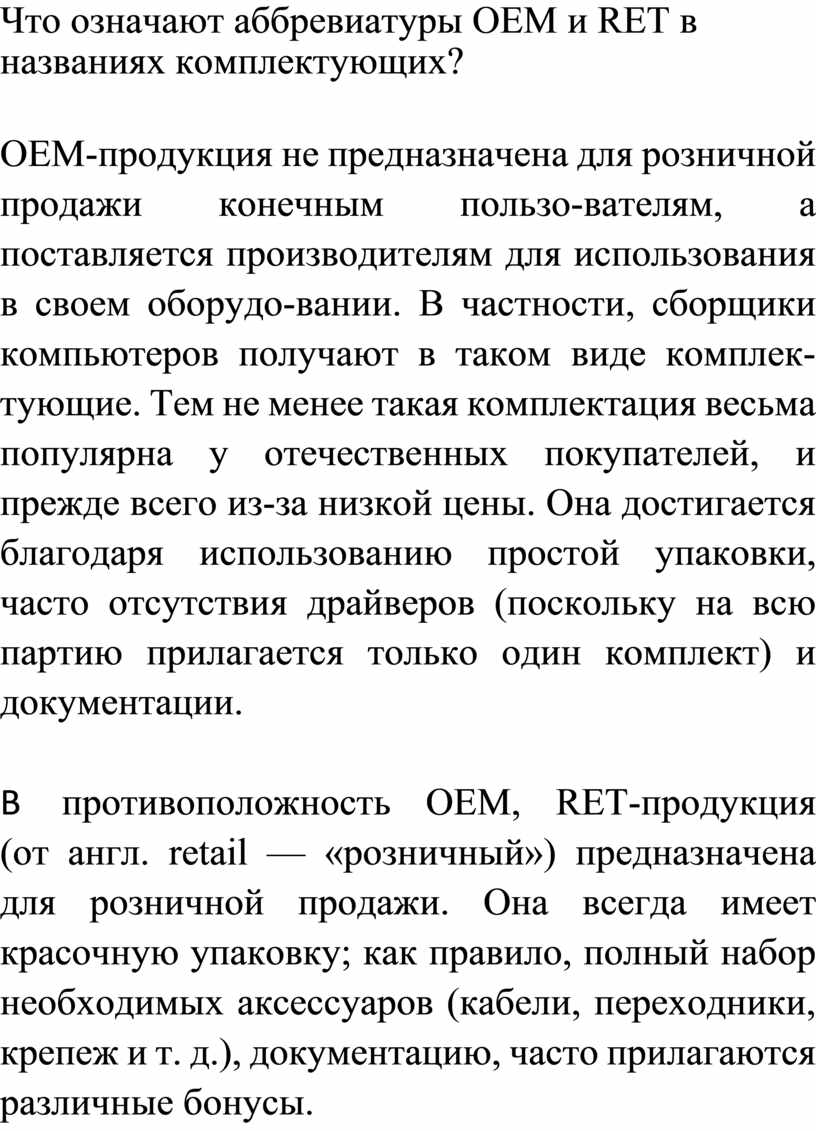 Что означают аббревиатуры OEM и RET в названиях комплектующих?
