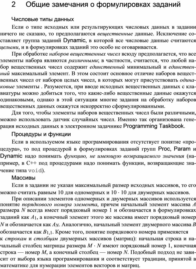 2 Общие замечания о формулировках заданий