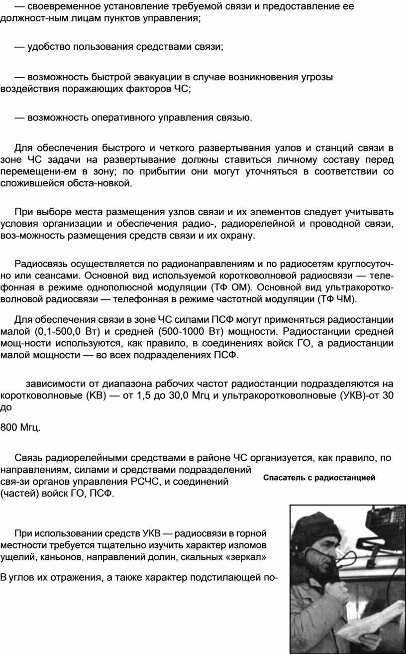 Связь — это важнейший элемент четкой организации и оперативного проведения поисково-спасательных и аварийно-восстановительных работ. Одним из основных ви-дов связи является радиосвязь.
