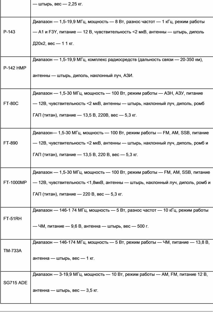 Диапазон — 1,5-19,9 МГц, комплекс радиосредств (дальность связи — 20-350 км), |