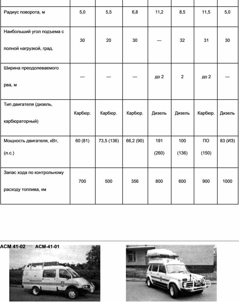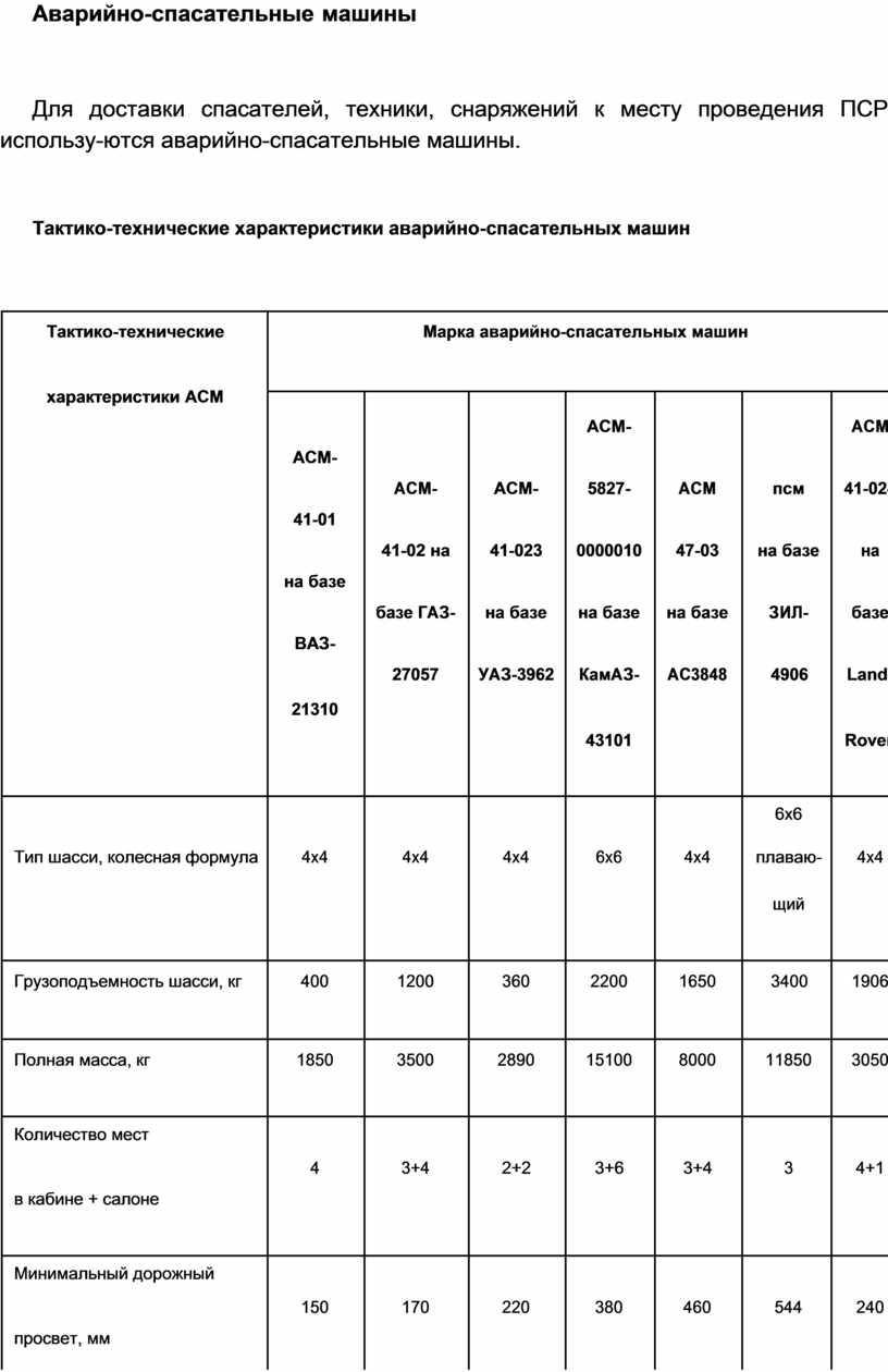 Тактико-технические характеристики аварийно-спасательных машин