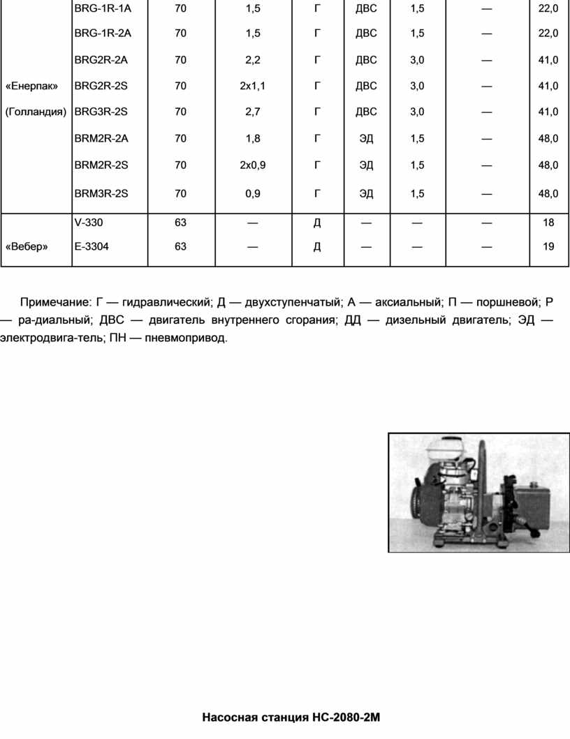 Примечание: Г — гидравлический; Д — двухступенчатый; А — аксиальный; П — поршневой; Р — ра-диальный; ДВС — двигатель внутреннего сгорания; ДД — дизельный двигатель; ЭД — электродвига-тель; ПН — пневмопривод.