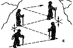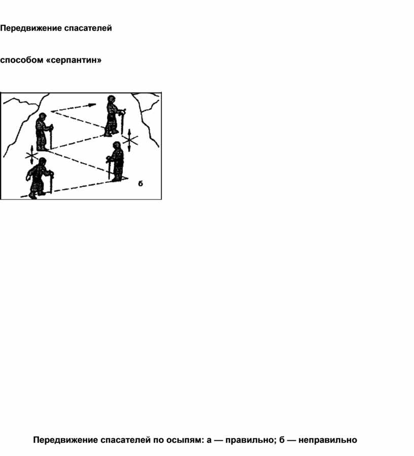 Передвижение спасателей по осыпям: а — правильно; б — неправильно
