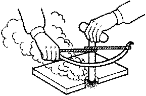 дрова, кусок резины, бумага, сухое топливо). Добывание огня трением Она плотно укладывается «шалашом» или