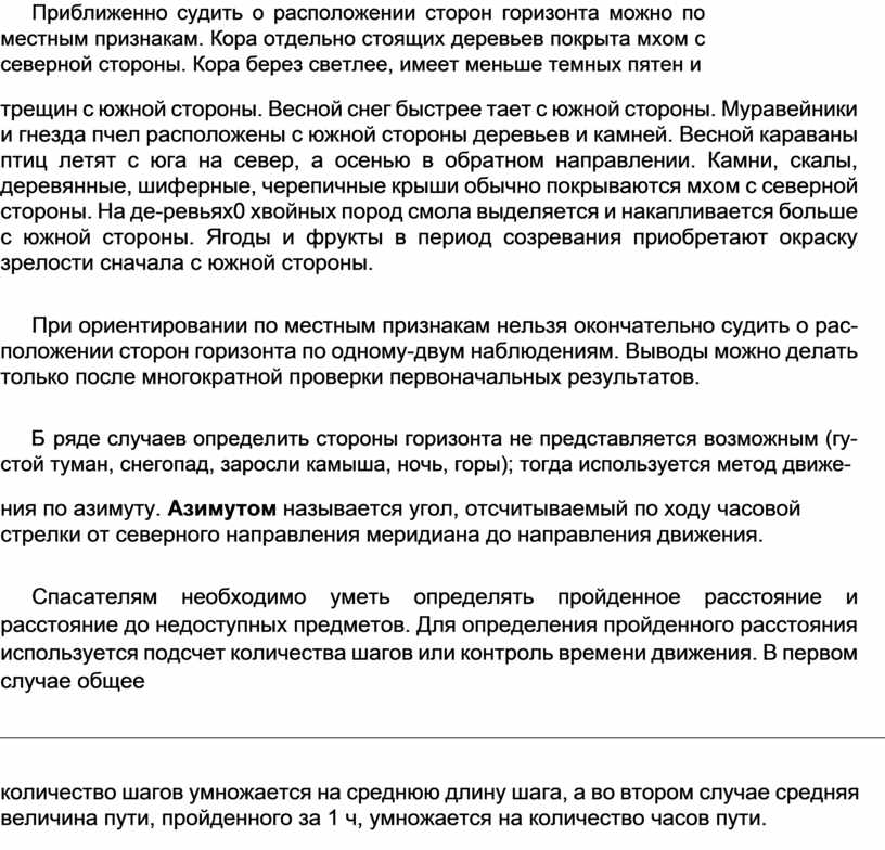 При ориентировании по местным признакам нельзя окончательно судить о рас-положении сторон горизонта по одному-двум наблюдениям. Выводы можно делать только после многократной проверки первоначальных результатов.