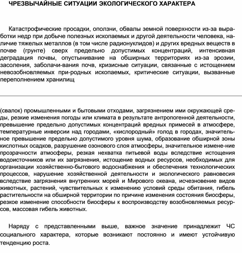 ЧРЕЗВЫЧАЙНЫЕ СИТУАЦИИ ЭКОЛОГИЧЕСКОГО ХАРАКТЕРА
