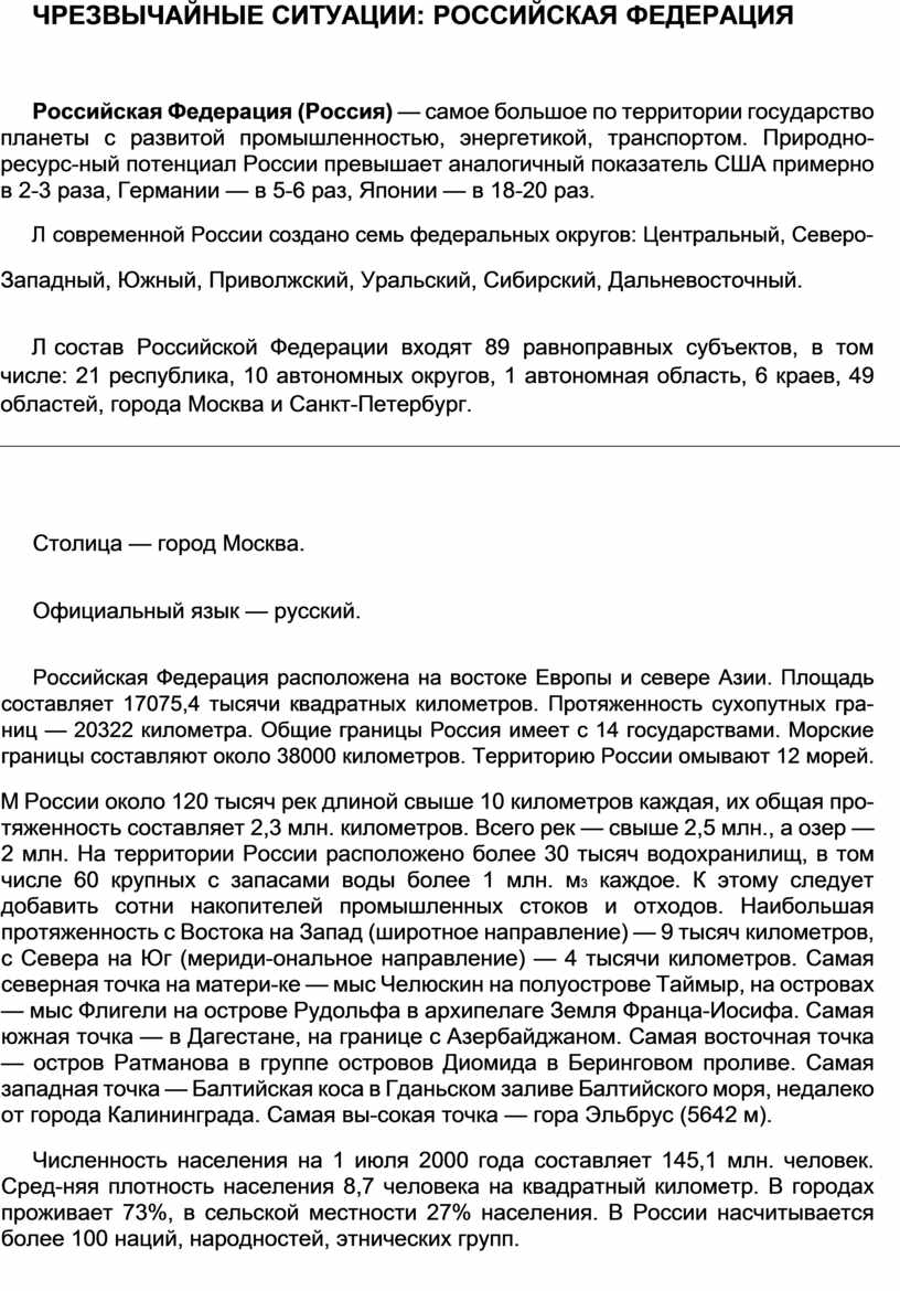ЧРЕЗВЫЧАЙНЫЕ СИТУАЦИИ: РОССИЙСКАЯ ФЕДЕРАЦИЯ