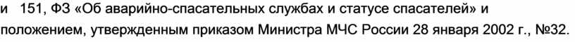 и 151, ФЗ «Об аварийно-спасательных службах и статусе спасателей» и положением, утвержденным приказом Министра МЧС России 28 января 2002 г., №32.