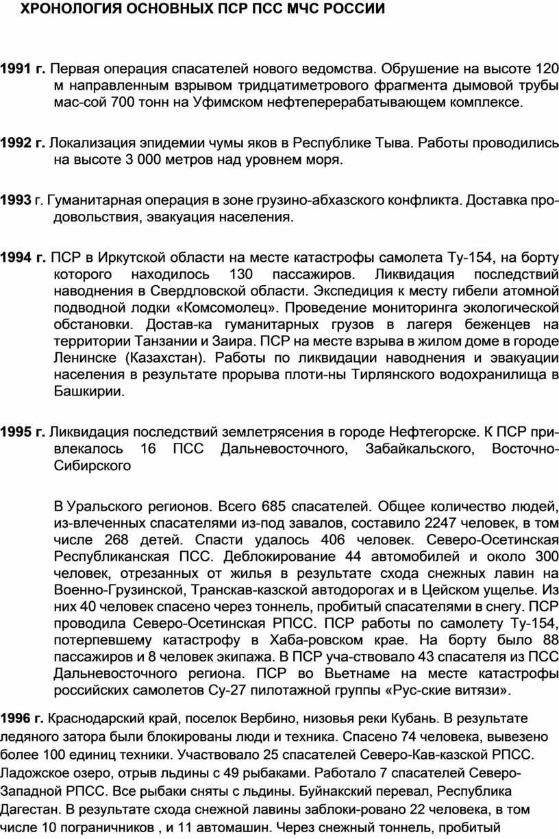 ХРОНОЛОГИЯ ОСНОВНЫХ ПСР ПСС МЧС РОССИИ