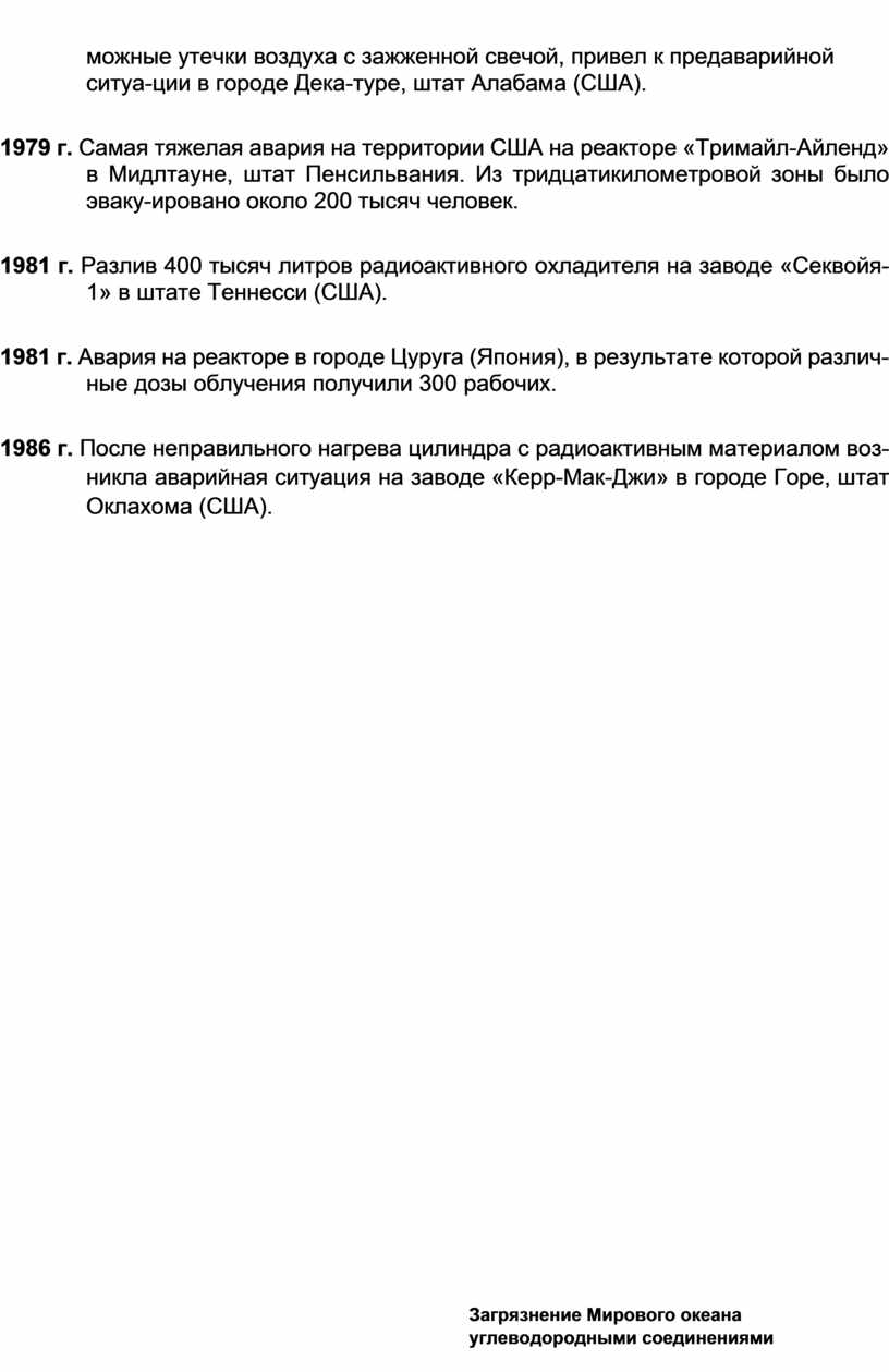 1986 г. После неправильного нагрева цилиндра с радиоактивным материалом воз-никла аварийная ситуация на заводе «Керр-Мак-Джи» в городе Горе, штат Оклахома (США).