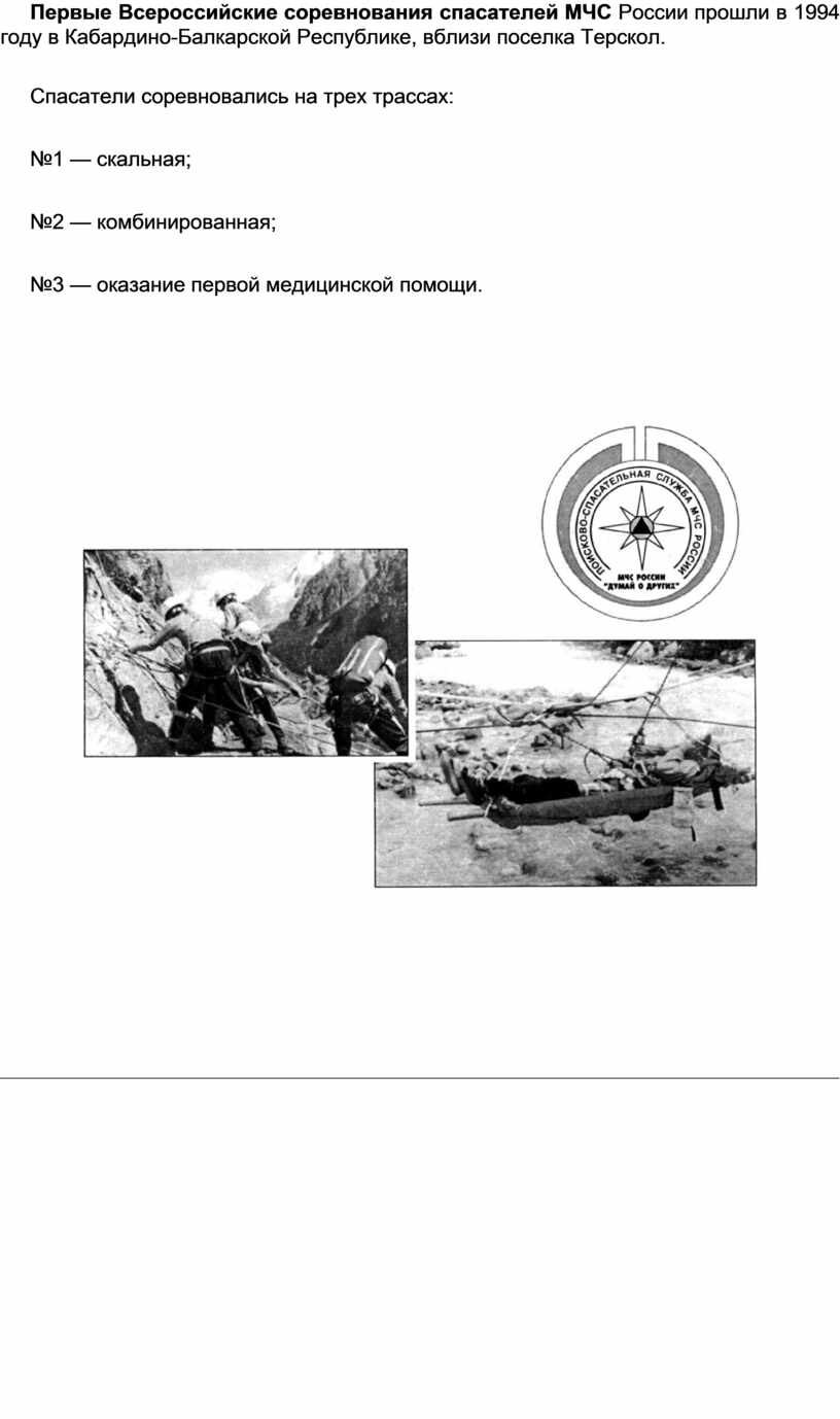 Первые Всероссийские соревнования спасателей МЧС России прошли в 1994 году в Кабардино-Балкарской Республике, вблизи поселка Терскол.