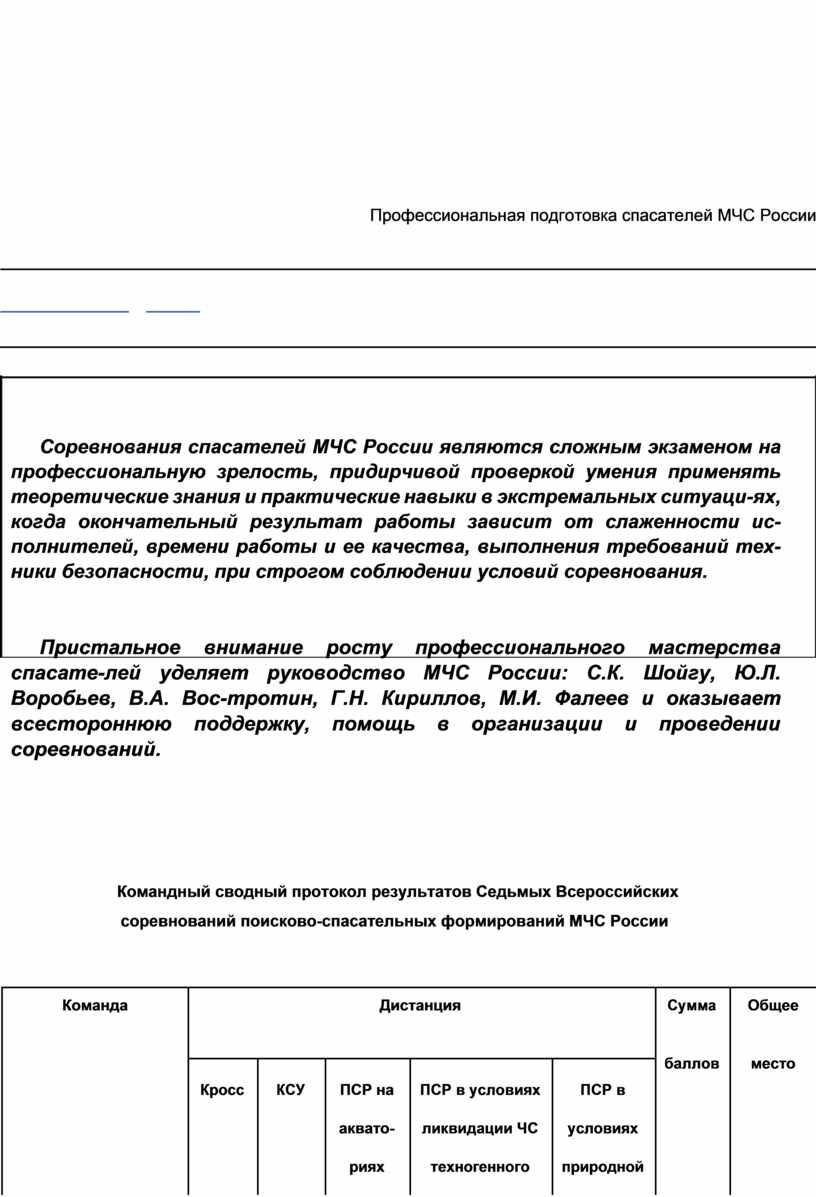 соревнований поисково-спасательных формирований МЧС России |