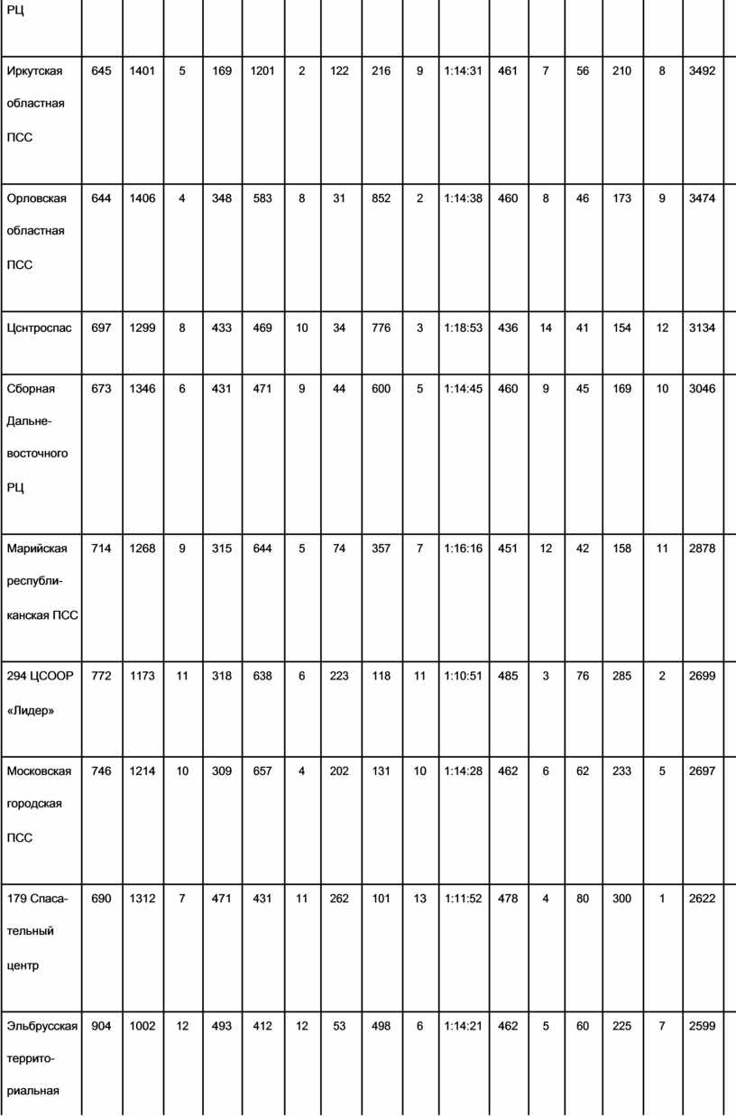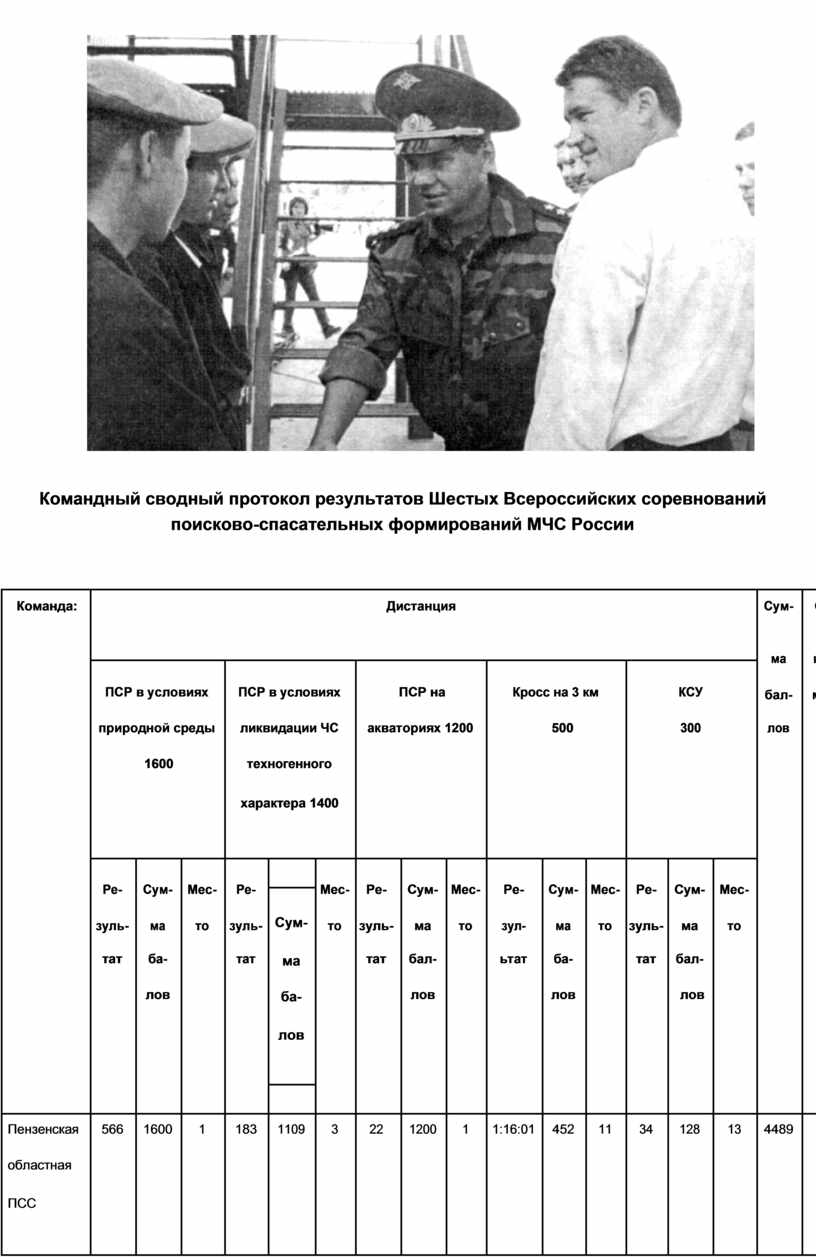 Командный сводный протокол результатов Пятых Всероссийских |
