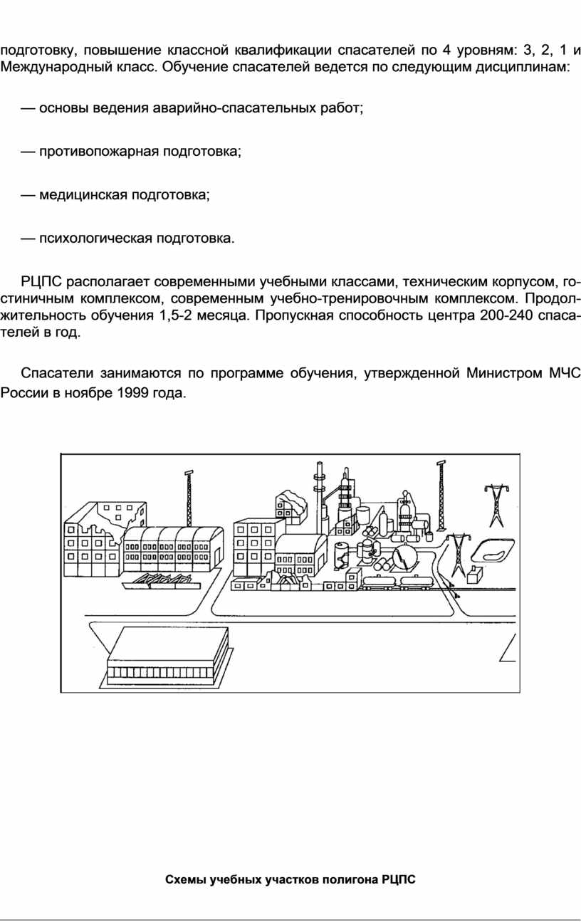 РЦПС располагает современными учебными классами, техническим корпусом, го-стиничным комплексом, современным учебно-тренировочным комплексом. Продол-жительность обучения 1,5-2 месяца. Пропускная способность центра 200-240 спаса-телей в год.