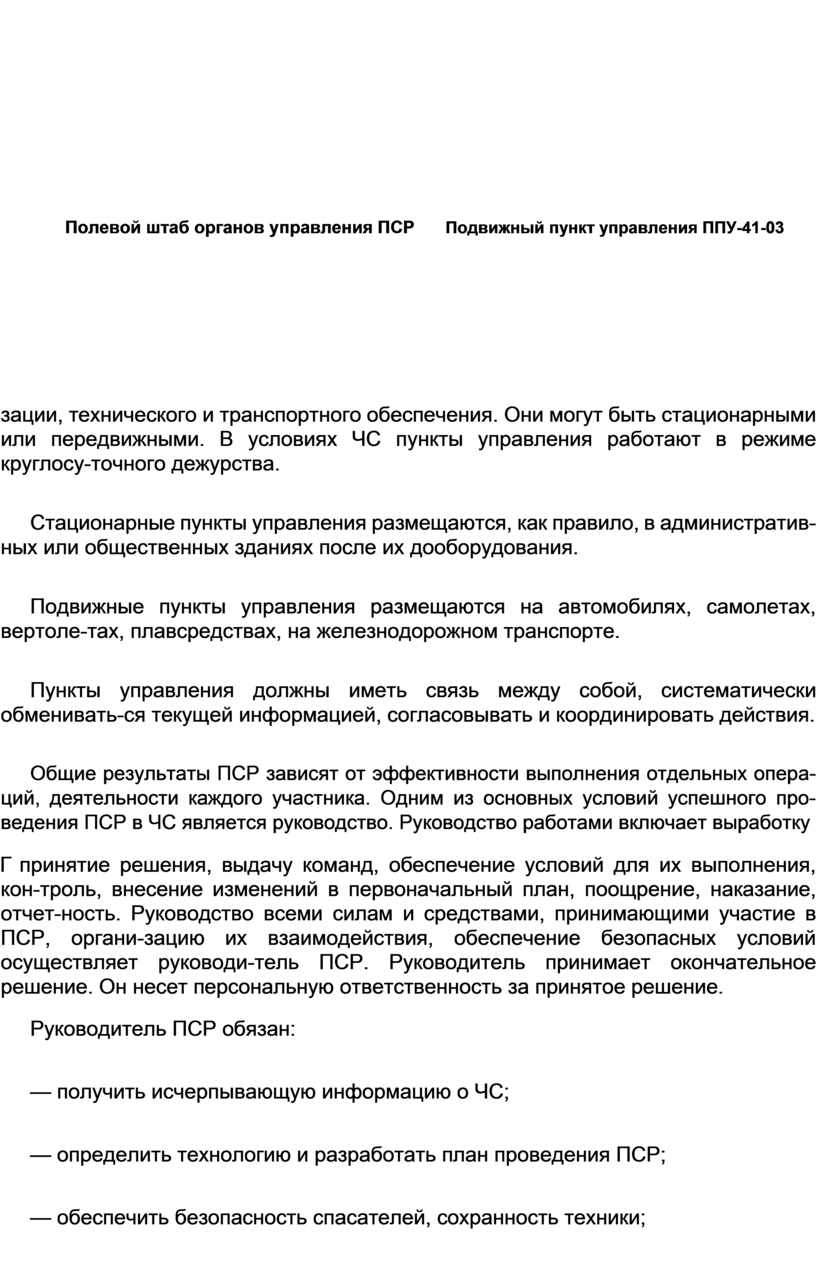 Полевой штаб органов управления ПСР Подвижный пункт управления ППУ-41-03