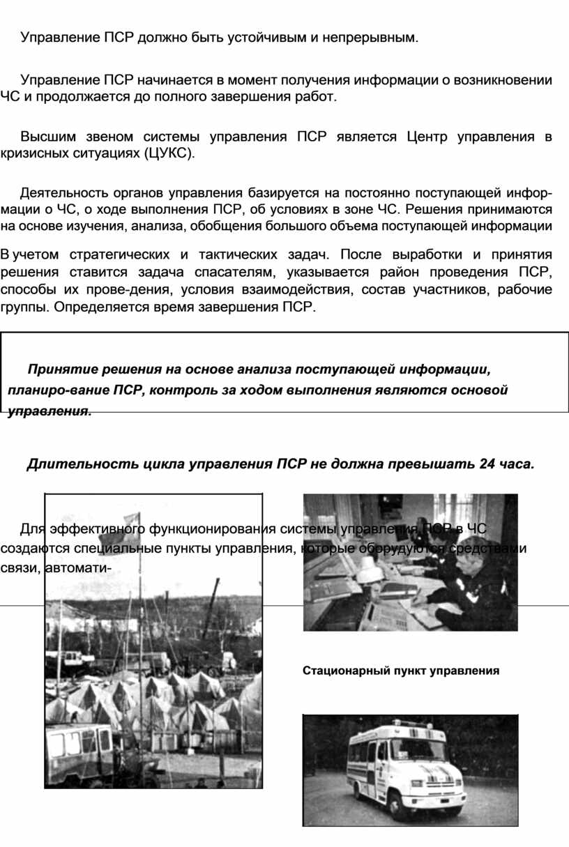 Принятие решения на основе анализа поступающей информации, планиро-вание ПСР, контроль за ходом выполнения являются основой управления.