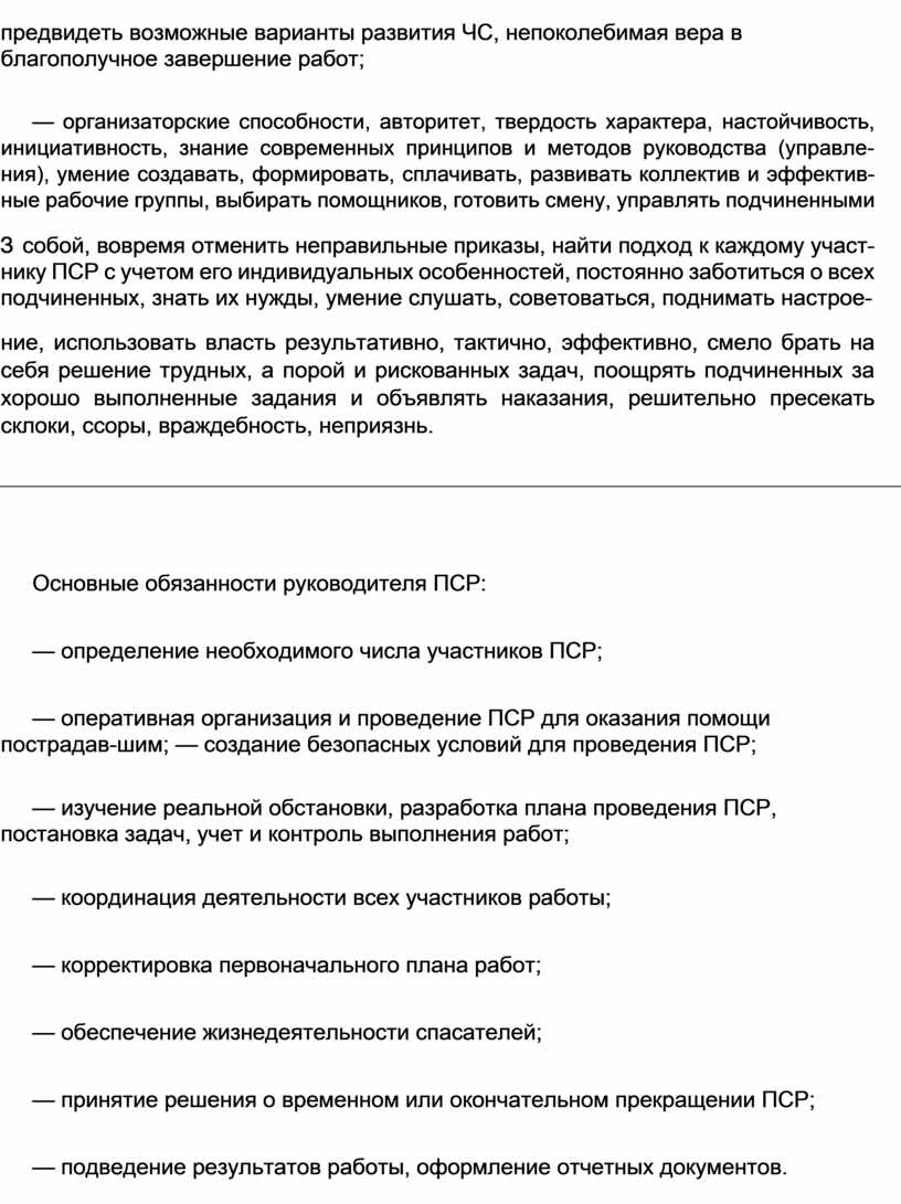 — оперативная организация и проведение ПСР для оказания помощи пострадав-шим; — создание безопасных условий для проведения ПСР;