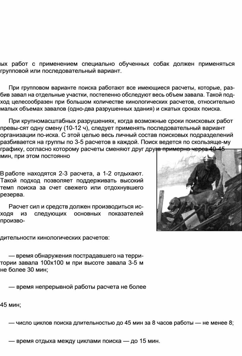 Опыт поисково-спасательных работ показывает, что использование собак наибо-лее эффективно в течение первых четырех-пяти суток с момента обрушения здания.